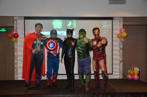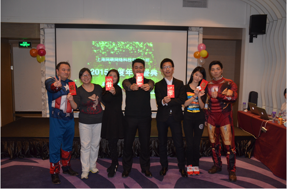 而年會最后由網萌CEO戴亮、項目運營總監楊立、招商總監余小浪、產品總監葉路路、客服總監徐飛等cosplay的復仇者聯盟團隊的登場再一次將年會氣氛推向最高潮,引得公司小伙伴爭先與之合影留念。